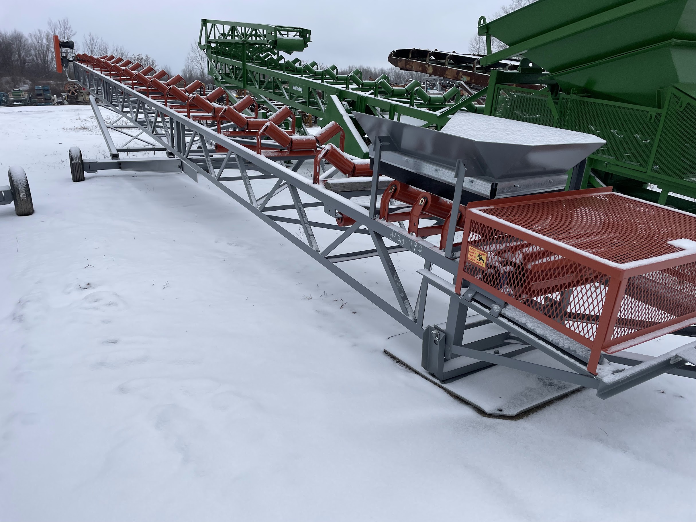 - 10HP MOTOR-#4 GEARBOX- DRIVE GUARD-5" CEMA B ROLLERS-SWIVEL PLATE-14" LAGGED HEAD PULLEY, 12" WING TAIL , 18" TAKEUPS AND 4 X 24 SKIRTED REEIVING HOPPERS