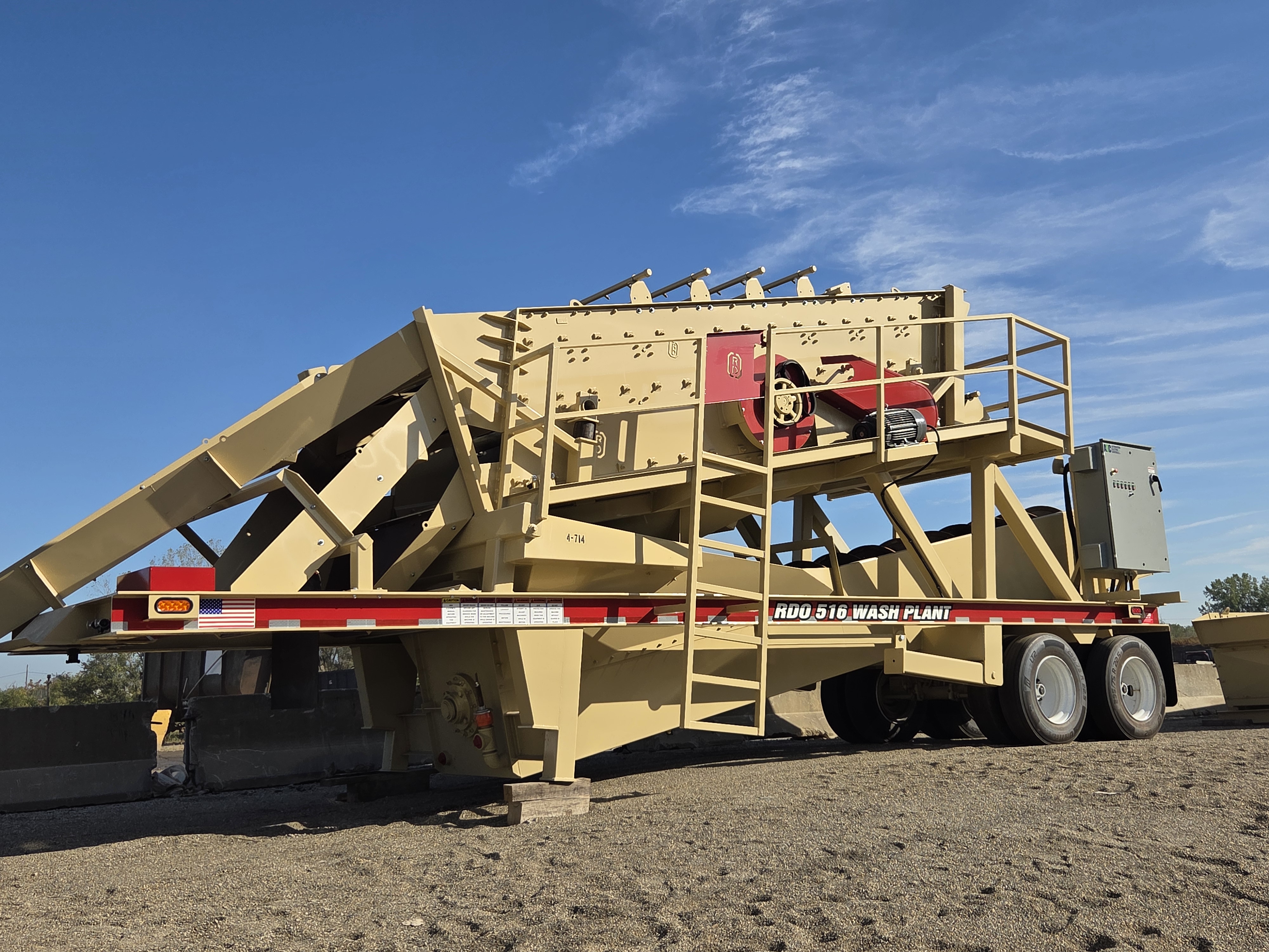 - NEW RD OLSON 516 WASH PLANT WITH A 5 X 16 TRIPLE DECK SCREEN, A SINGLE 36 X 25 SANDSCREW, SPRAY BARS WITH WATER MANIFOLD, PORTABLE CHASIS AND ELECTRIC DRIVE